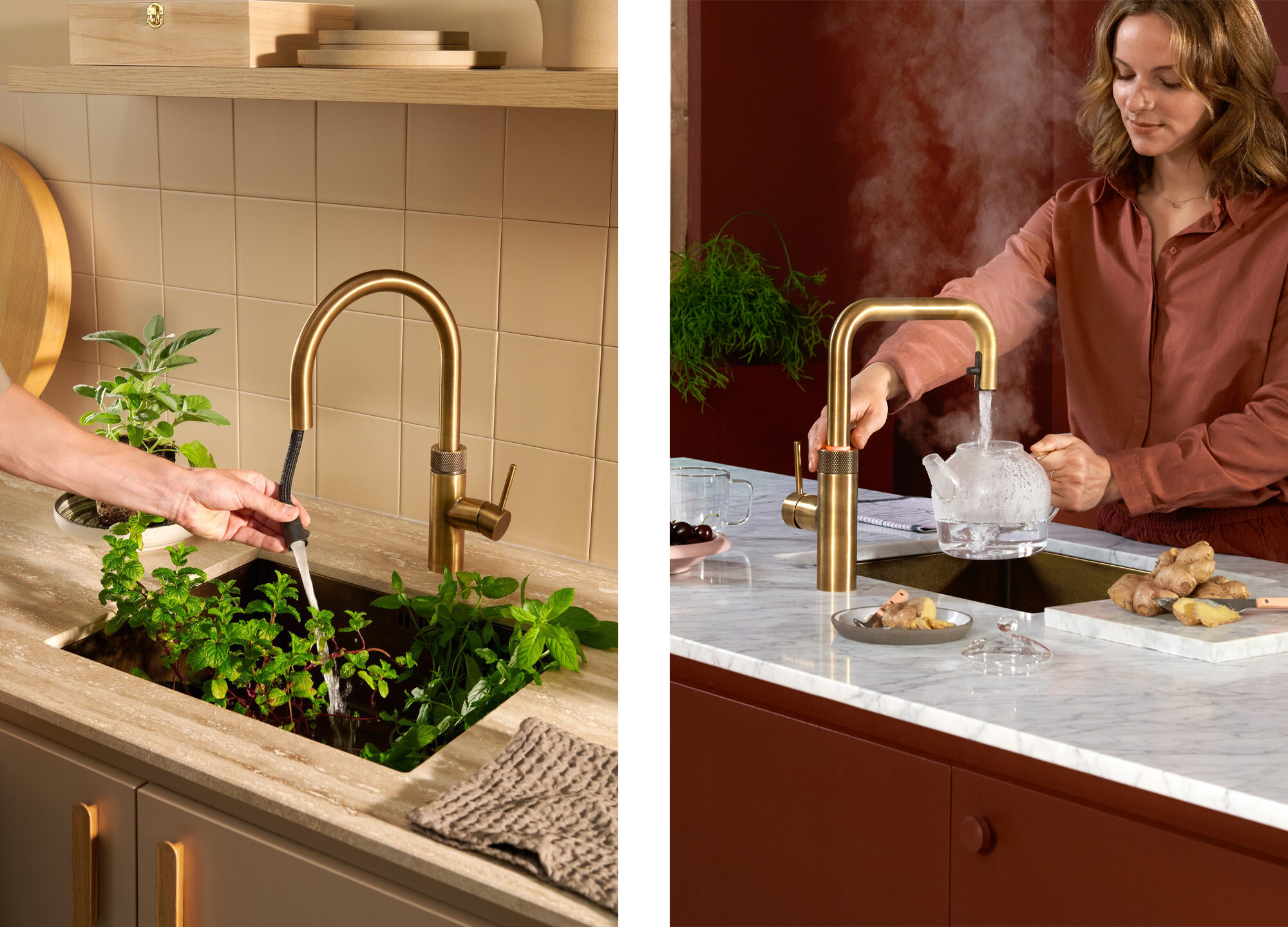Smaakt naar meer? Of zie je de kraan zelfs al helemaal voor je op je aanrecht? Dan hoef je niet lang meer te wachten: de Flex Round en Flex Square kraan in messing patina zijn vanaf maart verkrijgbaar. De Fusion kraan was er al in dezve levendige finish. Ontdek meer op Quooker.nl.