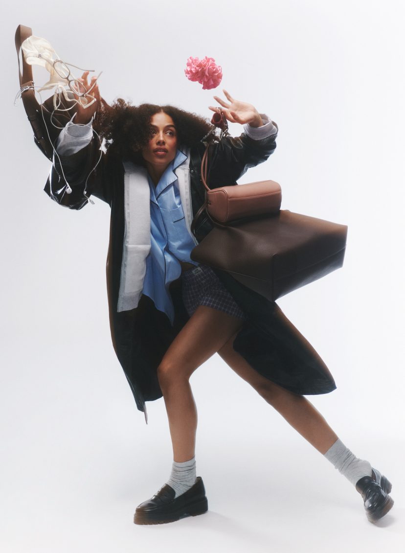 TOCH DIE VONK “Thuis steel ik vaak kleding van mijn vriend – alles wat zacht en oversized is. We zijn vijf jaar samen en hebben elkaar ontmoet op de toneelschool. Het was niet meteen liefde op het eerste gezicht, in het begin waren we zelfs elkaars wingman voor andere mensen. Maar we deden wel vaak dingen samen, en toen sloeg de vonk over.”