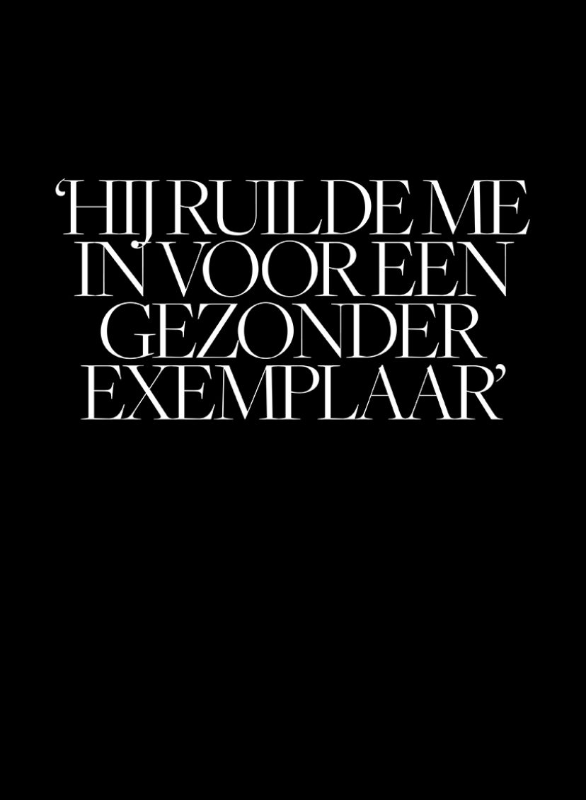 De dagen erop bracht ik liggend door in onze bus, zo hevig had de tocht erin gehakt. Hij daarentegen vertrok elke ochtend voor een lange wandeling, kwam aan het einde van de middag terug en ging dan met een krantje en zijn laptop voor de camper zitten. Mij min of meer aan mijn lot overlatend. Zijn woorden hadden emotieloos geklonken, niet als opgekropte woede, niet gefrustreerd of vol pijn. Ook de zin die hij erop had laten volgen: ‘Ik ruil je in voor een gezonder exemplaar’, bracht gek genoeg bij mij niet de storm op gang die je zou verwachten. Wij waren al 35 jaar samen, we hadden een heel fijn huwelijk, ik had mijn geliefde paarden, hij zijn motor en de muziekfestivals. Samen kregen we twee kinderen die hij grotendeels heeft opgevoed omdat ik als kostwinner voor werk veel in het buitenland zat. Ik kon me gewoonweg niet voorstellen dat hij me écht in de steek zou laten en met een ander verder zou gaan. Dus hadden we het er niet meer over, de hele verdere vakantie niet.