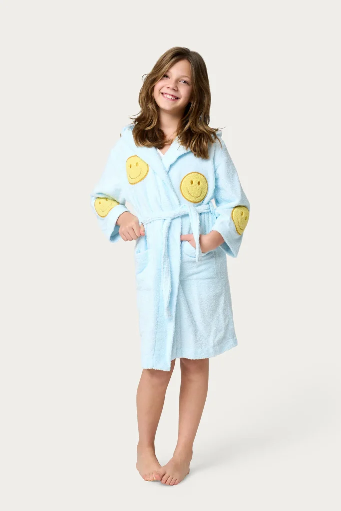 Deze vrolijke badjas met smileys brengt meteen een dosis extra vrolijkheid en maakt elk badmoment nét wat leuker. Zacht, warm en gemaakt om lekker in weg te kruipen.