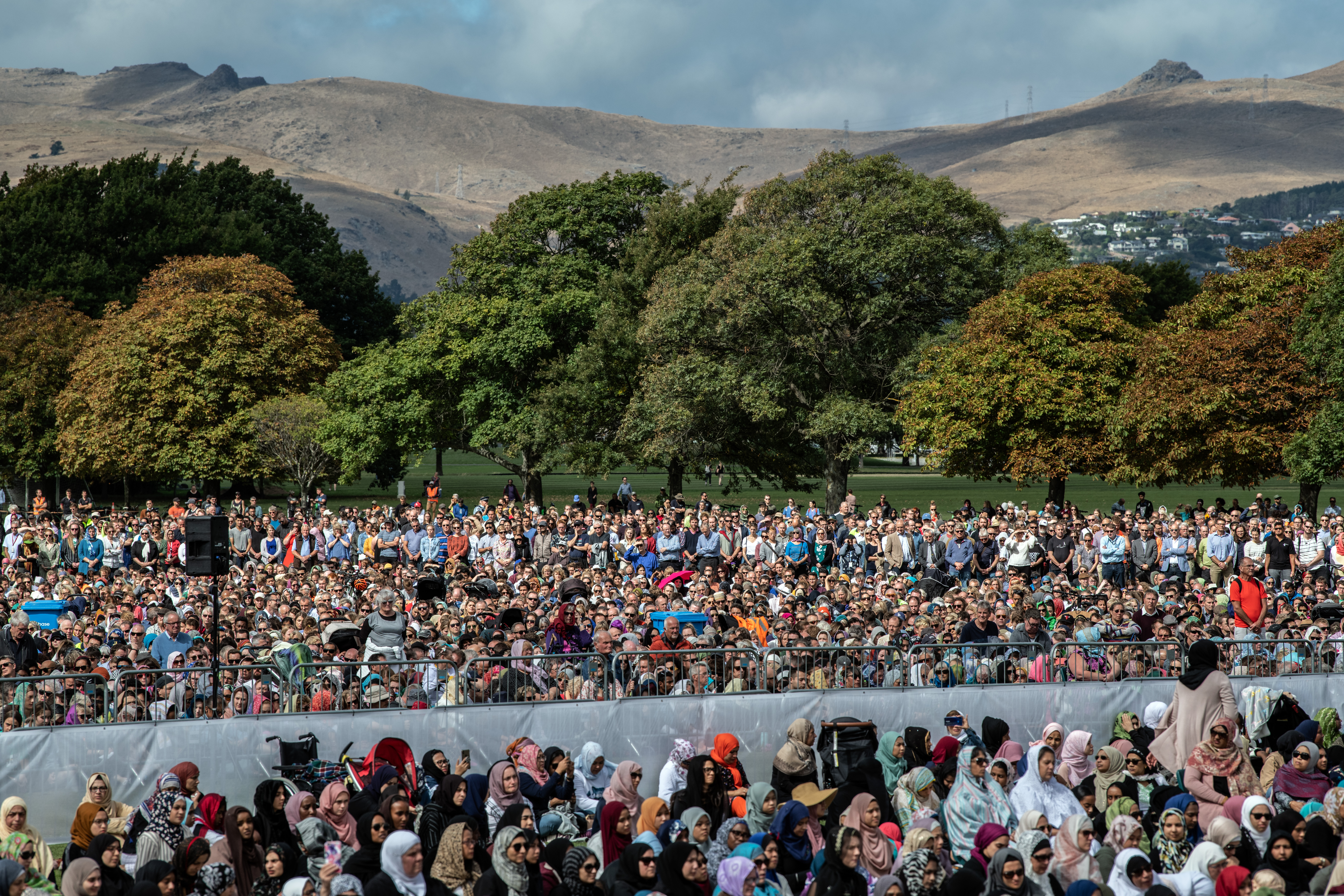 Een rechts-extremist schoot vorige week vijftig mensen dood in twee moskeeën, waaronder de Al Noor-Moskee. In een park tegenover de moskee was het gebed, waar vijfduizend gelovigen en niet-gelovigen aanwezig waren. Na het gebed volgden twee minuten stilte en werden de laatste slachtoffers begraven. De andere slachtoffers werden eerder al begraven.