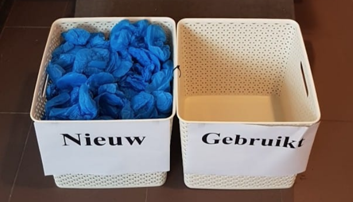 Dat heeft een Albert Heijn in Castricum besloten omwille van de hygiëne. ‘Kinderen mogen volgens de richtlijnen van Nederlandse Voedsel- en Warenautoriteit alleen in het zitvlak van de winkelwagen plaatsnemen. Toch zitten kinderen vaak in het zogenoemde boodschappenvlak’, zo valt er te lezen op een bord in de winkel. Het dragen van de plastic, opvouwbare ‘hoesjes’ voor om je schoenen is vanaf nu daarom verplicht voor kinderen die mee willen rijden in de winkelwagen tijdens het boodschappen doen. Een schoonmaakbedrijf heeft afgelopen woensdag alle winkelwagens onder handen genomen, om ervoor te zorgen dat de wagens weer hygiënisch zijn. De schoentjes moeten na gebruik in een aparte bak worden gelegd om deze weer te kunnen reinigen.