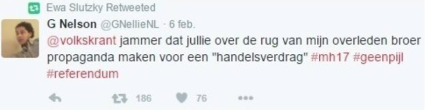 Hij verwart 'vrijheid' met moreelloos aankloten ten koste van andere mensen.#GordonNelson @FreeMindNellie. #MH17 #trolhttps://t.co/szoJLCd2RX— Pluk van de Petteflet ❌ (@PlukPet) January 15, 2018
