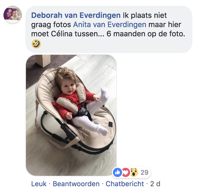 1. Célina had toen ze 6 maanden oud was al een flinke bos haar.
