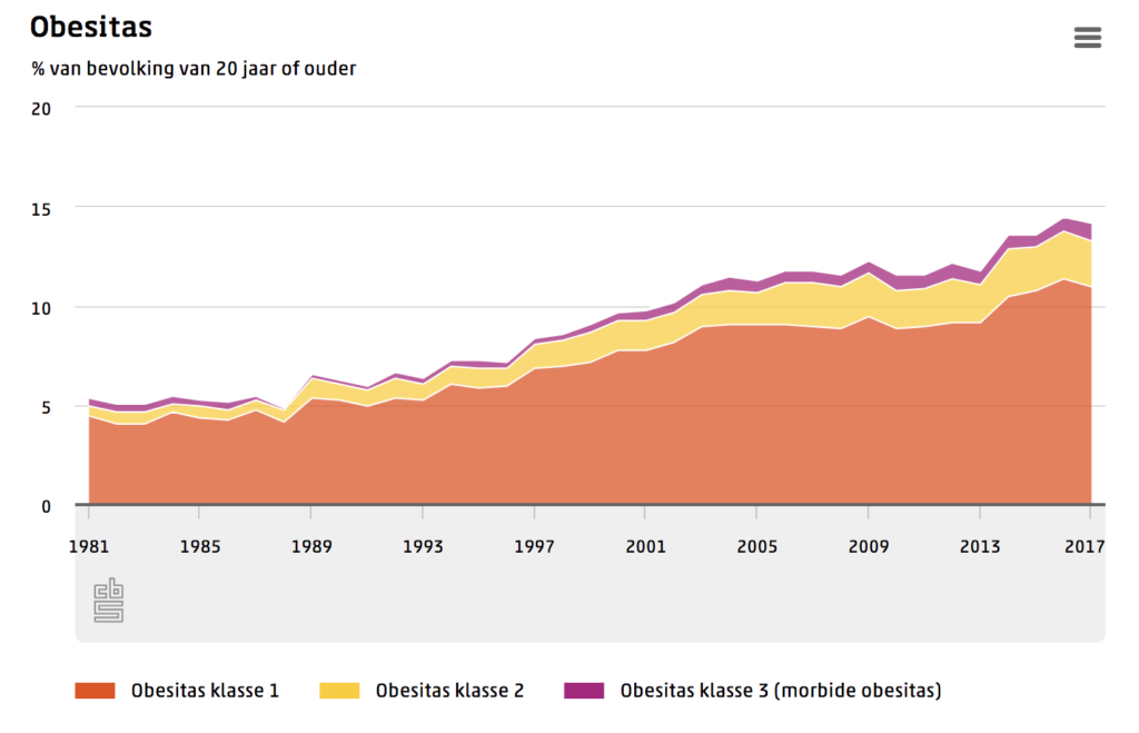 Het aantal volwassenen dat lijdt aan morbide obesitas, een ernstigste vorm van zwaarlijvigheid, is in Nederland opgelopen tot ruim 100.000. In totaal heeft 14 procent een vorm van obesitas.