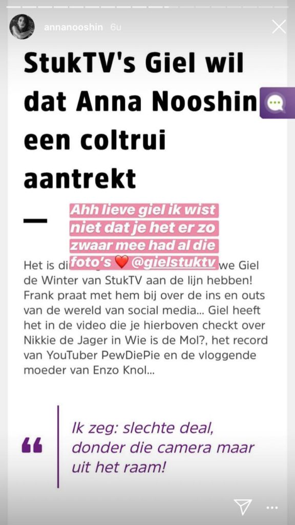 Deze week is dat volgens hem Anna Nooshin, enne, daar is-ie nogal stellig over.