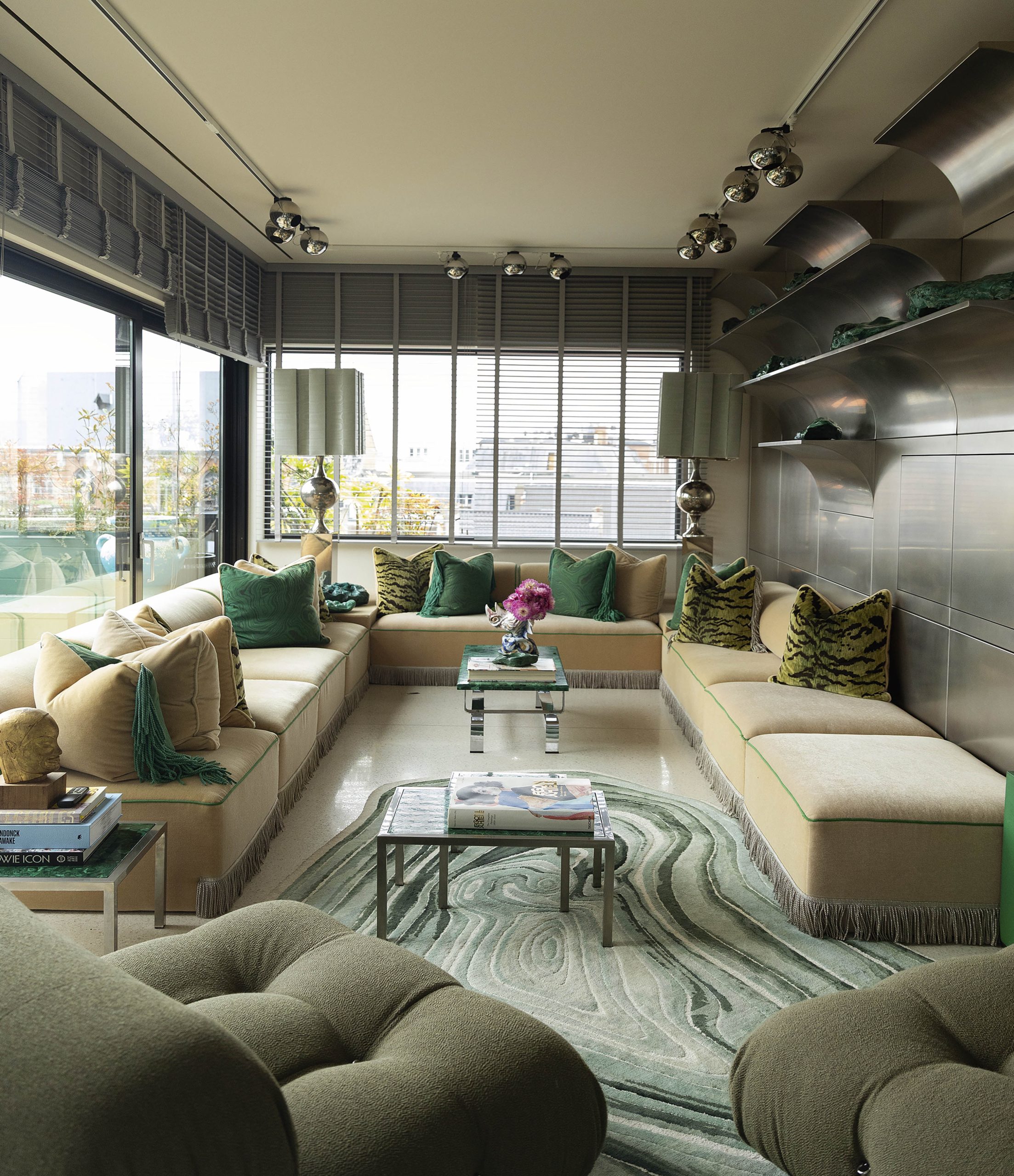 “Gert Voorjans is interieurontwerper en een goede vriend. Dit is het derde huis dat ik met hem heb ingericht. Hij kent mijn persoonlijkheid volledig, dat zie je en dat voel je. We gingen aan de slag alsof we een collectie maakten: met moodboards, stofstalen en structuren. Het is een heel vrouwelijk geheel geworden met veel roze, luipaard en groen. Grappig: groen is een kleur die in al mijn huizen terugkomt. Ook mijn Essentiel Antwerp-bureau, of ‘kantoor’ zoals jullie het in Nederland zeggen, is groen. Ik zou eens moeten opzoeken wat mijn voorliefde voor die kleur betekent.”